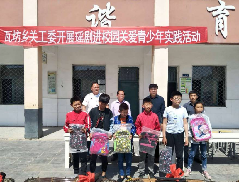 乡村两级领导与全体师生共同欣赏了瑶剧节目,并现场给20多名建档立卡贫困生送上了新书包,送上了儿童节的祝福,同时鼓励他们听老师的话,好好学习,健康成长,长大成为祖国的栋梁。
