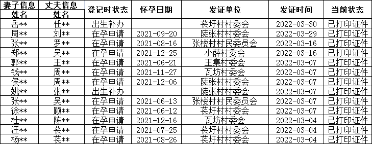 瓦坊镇2022年3月份《生育服务证》登记办理清册