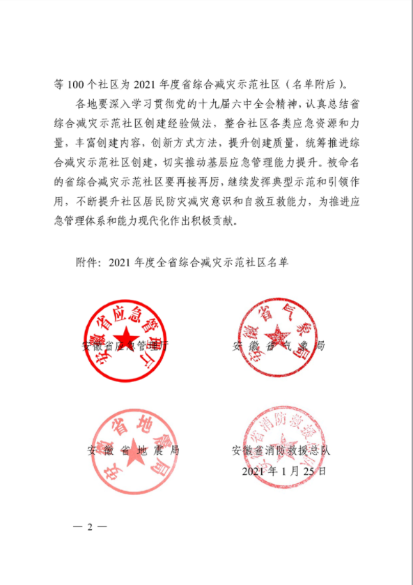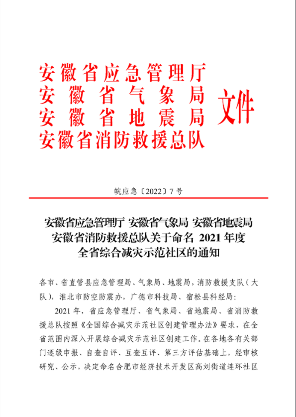 关于命名2021年度全省综合减灾示范社区的通知