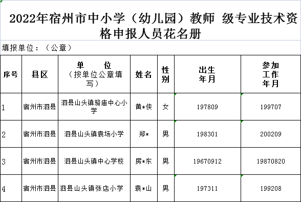 【评审结果】宿州市2022年度高级教师职务评审拟通过人员名单