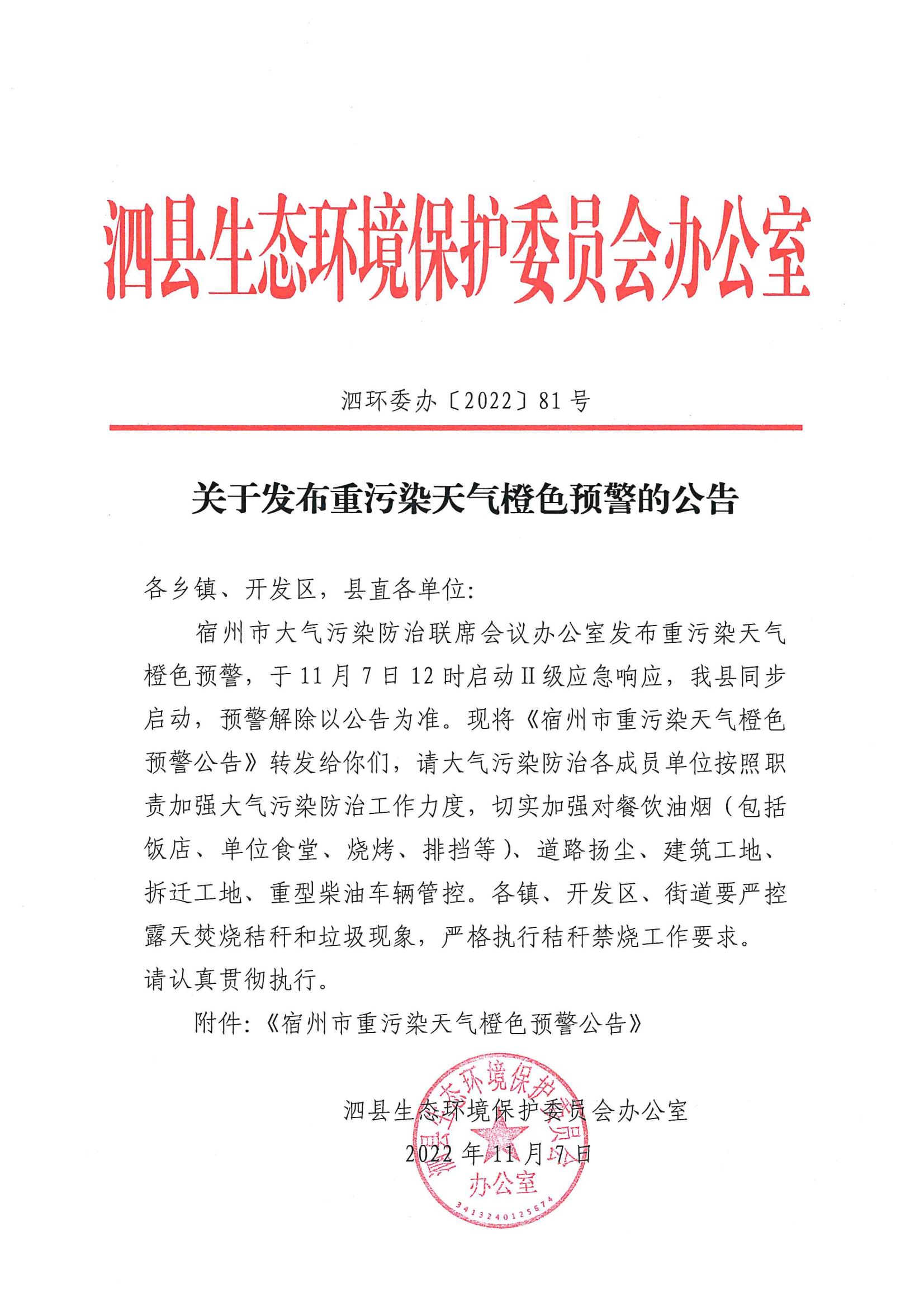 关于发布重污染天气橙色预约的公告