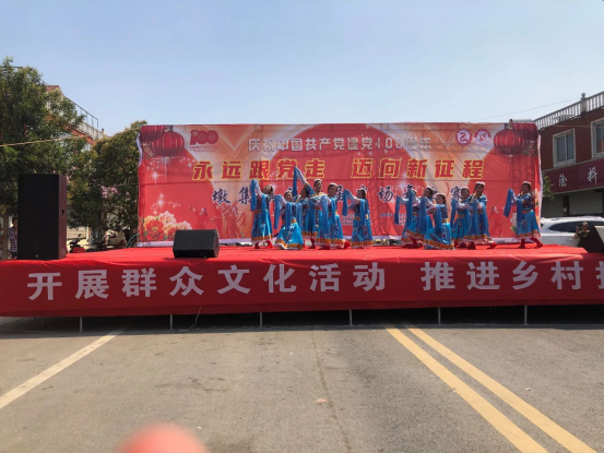 近年来,墩集镇高度重视群众性文化事业的发展,连续多次成功举办了“曲艺大赛”“年度群众性系列体育活动”和“广场舞大赛”,为繁荣农村文化、助推脱贫攻坚提供了强大的精神动力。在迎接建党一百周年的喜庆日子里,镇新时代文明实践所、镇文化站联合举办了这场以“永远跟党走 迈进新征程”为主题的广场舞大赛。旨在通过比赛,引导广大群众感党恩、听党话、跟党走,用文化凝聚人心,用体育促进和谐,从而不断推进乡村文化振兴。