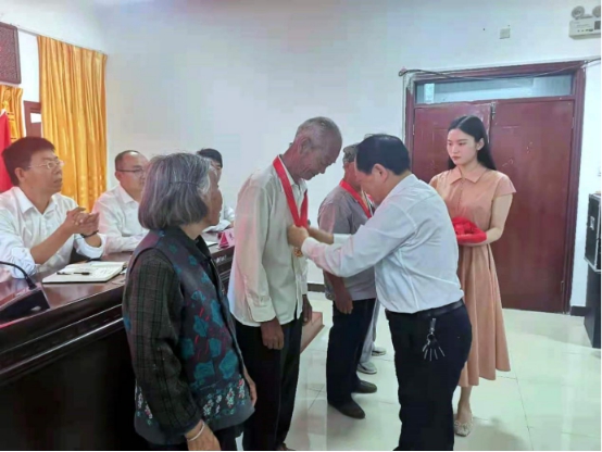 每一枚金光灿灿的纪念章,见证的都是一份矢志不渝跟党走的坚定初心,体现的都是不忘初心为人民的高尚情怀。随后,纪念章获得者代表周茂贤、刘良志分别发言,和大家一起回忆入党初心、回顾峥嵘岁月、讲述奋斗故事。