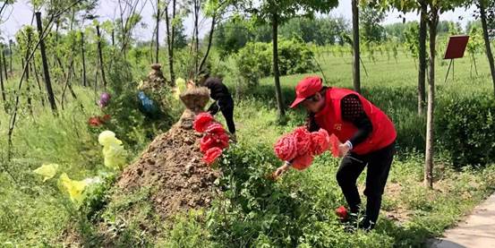 5月1日,我镇学雷锋志愿者们,开展移风易俗活动在全镇组织志愿者近千人,清理我镇土坟上不文明现象的塑料花,几天来志愿者们,清理上万个坟头,清理塑料花3万余株。