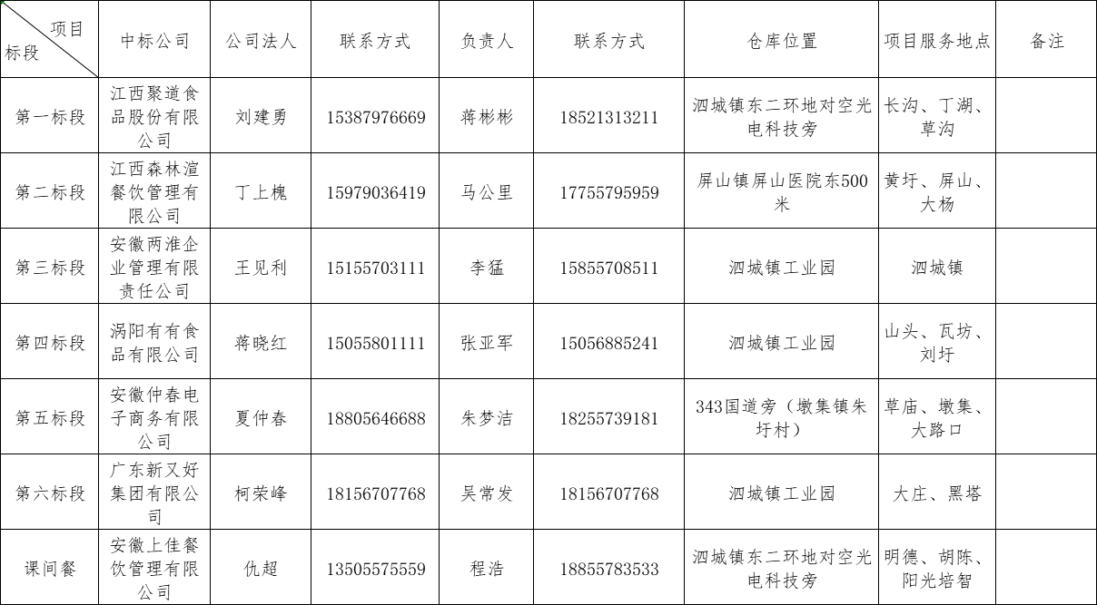 【营养改善计划】2021-2022学年度营养餐中标单位信息表