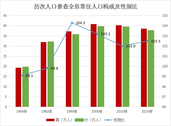 全县常住人口中,男性人口为386288人,占50.6%;女性人口为377022人,占49.4%。常住人口性别比102.5(以女性为100,男性对女性的比例),2010年365bet体育存款_365充值真人注册_我和大佬的365天第三季免费看第六次全国人口普查常住人口性别比为102.0。