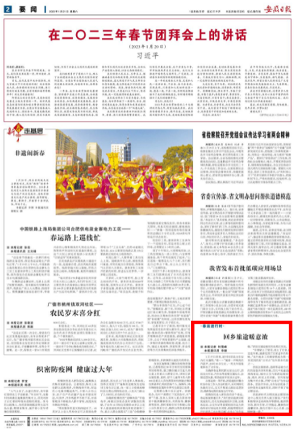 【安徽日报】回乡旅途暖意浓